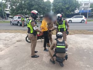3.เป็นผู้ขับขี่(รถจักรยานยนต์)เสพยาเสพติดให้โทษชนิดร้ายแรงประเภท 1 (ยาบ้าหรือเมทแอมเฟตามีน) โดยไม่ได้รับอนุญาต 🔺สถานที่จับกุม / เกิดเหตุ