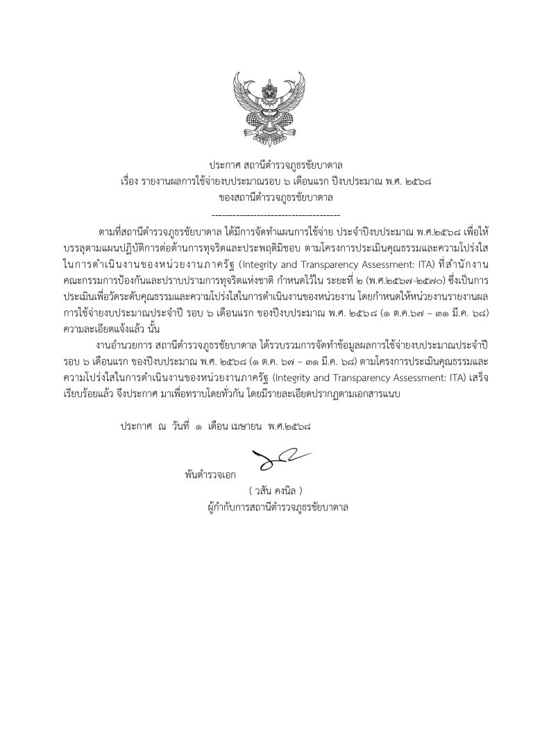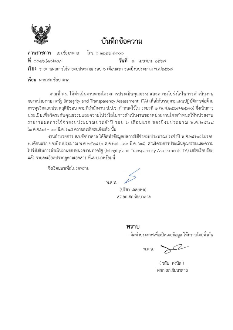 รายงานผลการใช้จ่ายงบประมาณ ประจำปี 2568 ในรูปแบบ PDF คลิ๊กที่นี่
